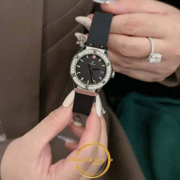 Đồng hồ Hublot Classic Fusion nữ 1:1 mặt đen niềng kim cương Moissanite